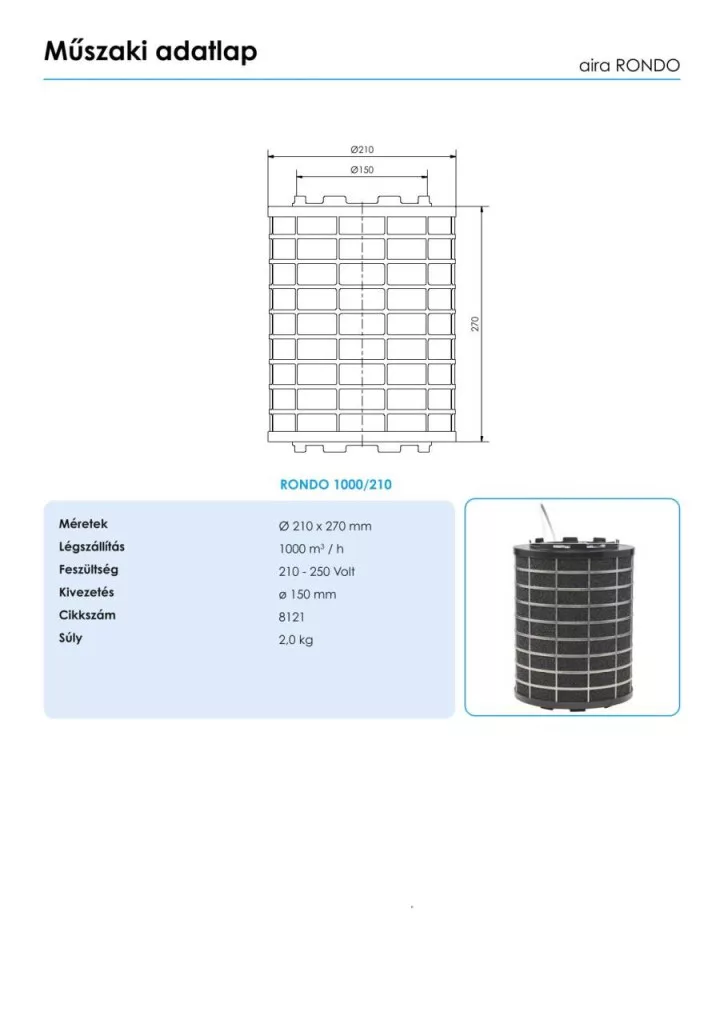 Az AIRA RONDO plazma szűrő alkalmas minden olyan páraelszívóhoz, ami 150 mm átmérőjű kivezetéssel rendelkezik, illetve csőtakaró kürtője minimum 240x240 mm méretű. A RONDO plazma szűrők háromféle teljesítménnyel (légszállítással) kaphatók. Minimális súlyával, ideális méreteivel szinte bármilyen kürtővel rendelkező páraelszívóhoz telepíthető. A RONDO plazma szűrőt az elszívó kivezető csonkjára kell szerelni. A többi plazmaszűrőhöz hasonlóan a RONDO könnyen és gyorsan, akár utólag is felszerelhető a már meglévő páraelszívókhoz. Amint bekapcsolja az elszívót, a beépített elektronikus érzékelő automatikusan bekapcsolja a plazma szűrőt (1 m/sec sebességgel) és azonnal megkezdi a levegő szűrését. Amint kikapcsolja az elszívót, a plazma szűrő is lekapcsol. (0,5W fogyasztás készenléti üzemmódban).