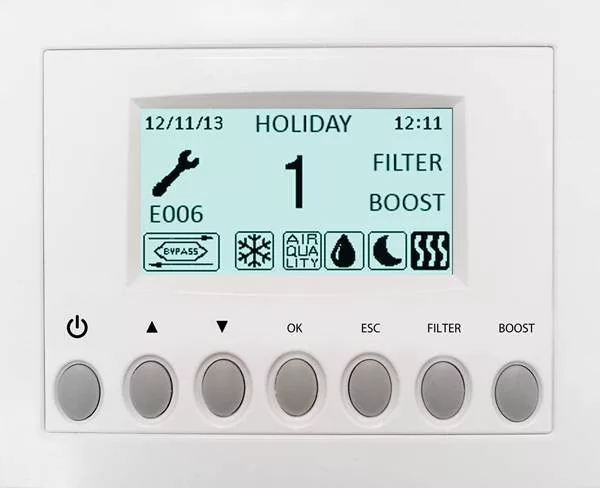 - beépített fizikai bypass (hőcsere nélküli szellőztetés lehetősége, szükség esetén);