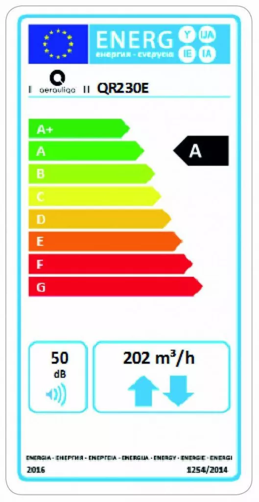 - a legmagasabb energiahatékonyságú épület és lakásszellőztetéshez, A vagy A+ energiabesorolással.