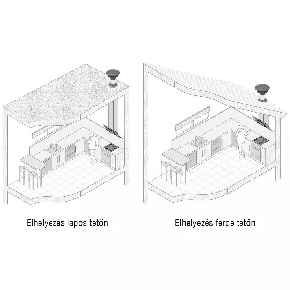 Külső motoros páraelszívó rendszer tervezése és telepítése esetén megfelelő távolságot kell biztosítani a páraelszívó ernyő és az adott külső motor között.