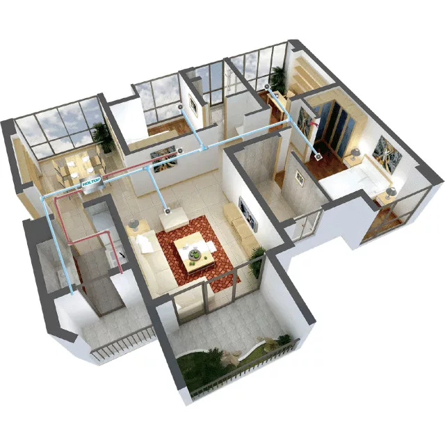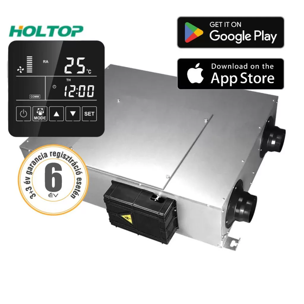 HOLTOP Eco-Smart Pro Plus XHBQ-D3.5 DMTHC központi hővisszanyerős szellőztető entalpia hőcserélővel, LCD kijelzős vezérléssel, WiFi-vel