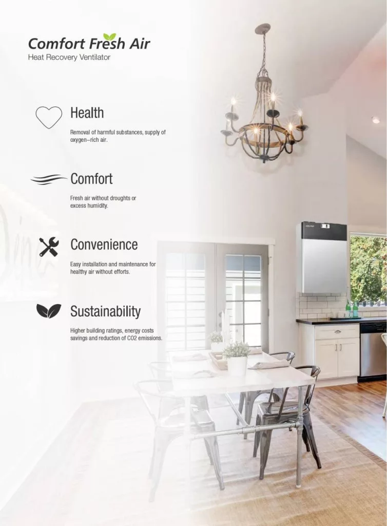 - környezetbarát szellőztetés, rendkívül alacsony környezetterhelés;