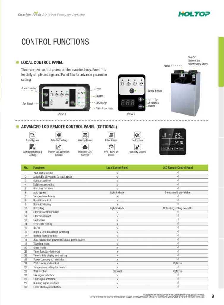 Az intelligens funkciók között megtalálható a heti időzítés, az automatikus bypass, a páraszabályozás, a szűrőcsere-jelzés, valamint az energiafogyasztás kijelzése is.