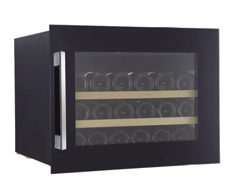 28 palack tárolása 3 db fa polcon, elektronikus érintővezérlés, 1 hűtési zóna, fekete üveg előlap, 40 dB(A) zajszint, LED világítás