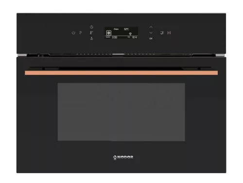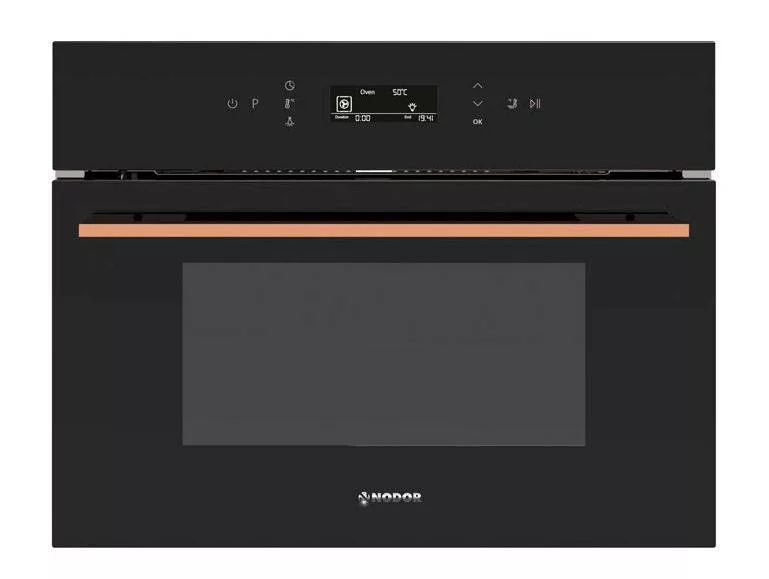 Az új Nodor sütők a design és a funkcionalitás közötti egyensúly remek példái. A minimalizmus nem mond ellent a funkcionalitásnak; teljesen sík előlapok, egyszerűség és az egyenes vonalak megkönnyítik a tisztítást A 3,9” grafikus szöveges kijelző érintővezérléssel. Az egyik elem, ami az új Nodor sütőknek jelleget kölcsönöz, az a fogantyú. Nem csak a króm vagy réz fényezése miatt, hanem ergonómiája és robosztus felépítése miatt is, ami tökéletesebbé teszi a háztartási készülékek kinézetét.Kiváló teljesítmény érhető el akkor is, ha szűkebb a hely, mivel a Nodor olyan kompakt termékcsaládot indít útjára, aminek Nsoft technológiával készült sütő, gőzsütő és mikrohullámú sütő a tagja.